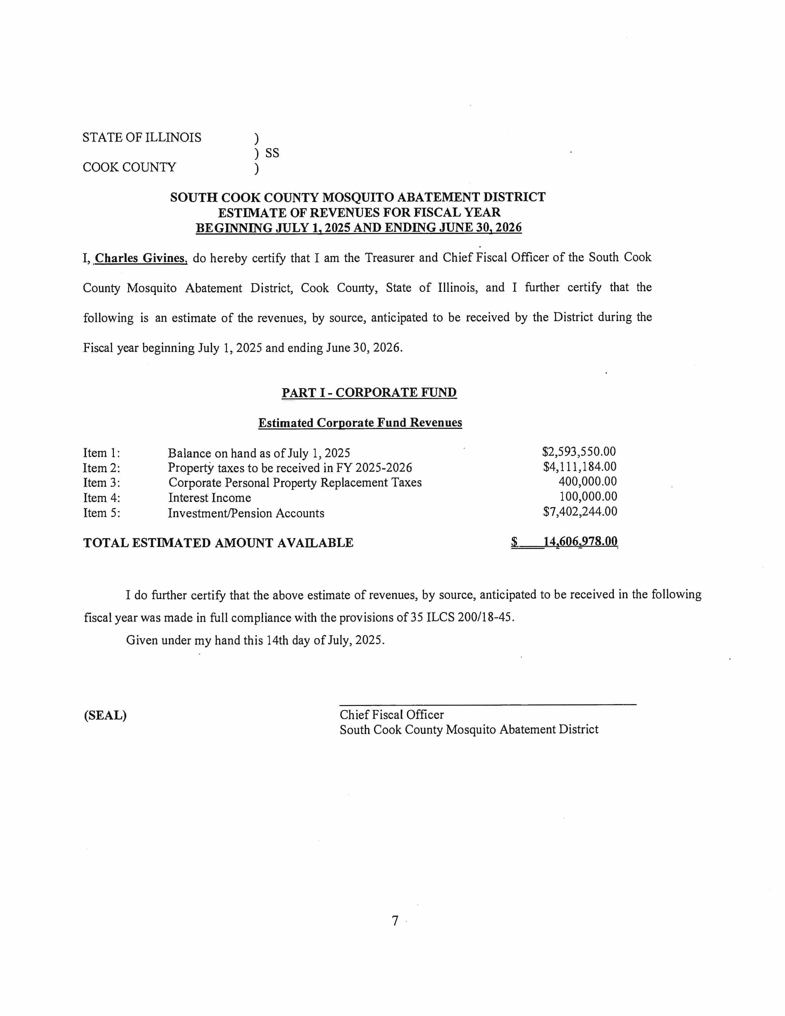 2025 SCCMAD Budget