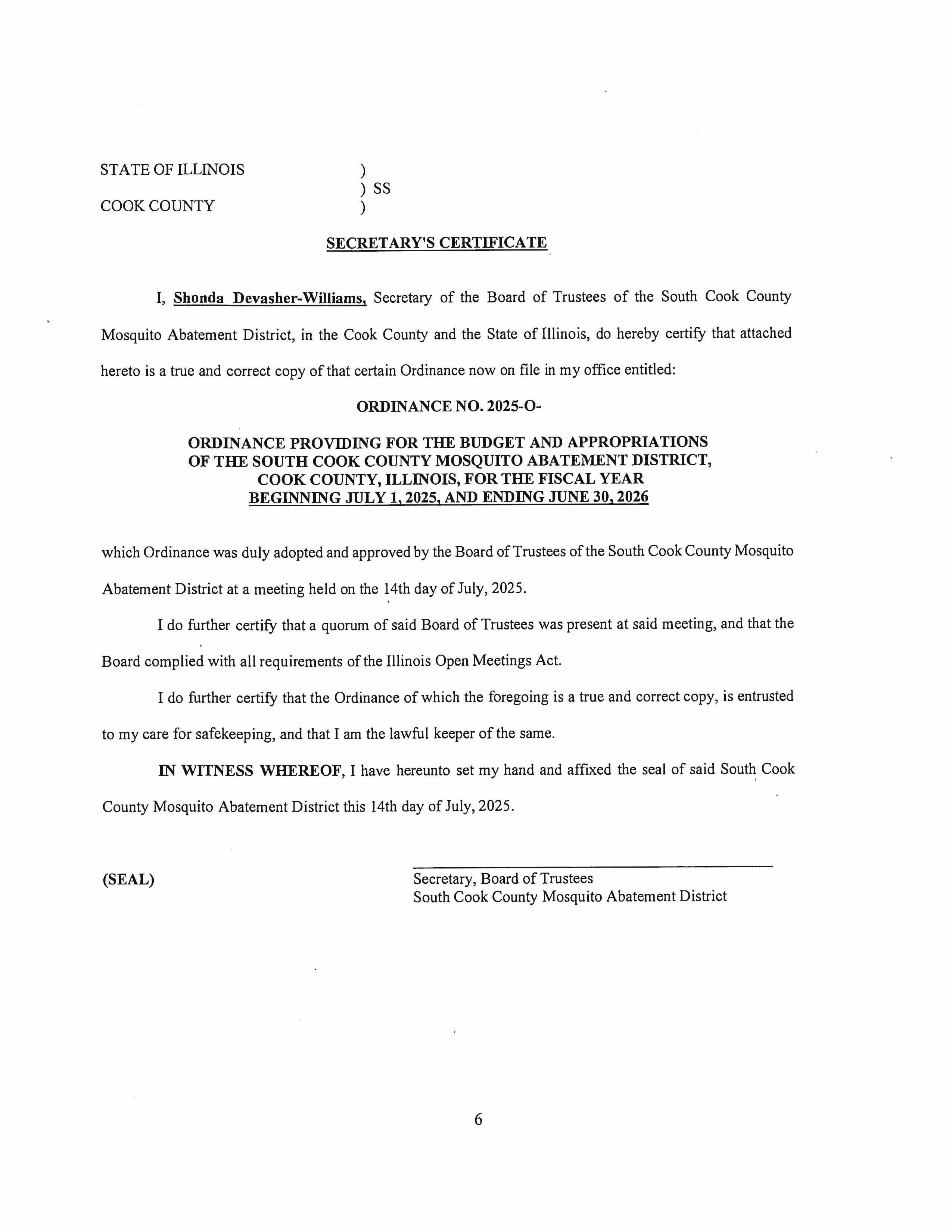 2025 SCCMAD Budget
